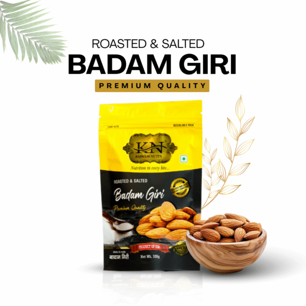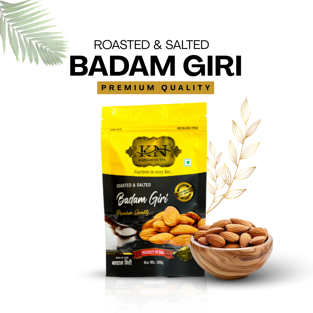 Kajwam Nutts Premium Roasted & Salted California Almonds | Badam Giri NP 100 gm | Crunchy & Flavorful Snack | High Protein & Gluten Free | Healthy Munching