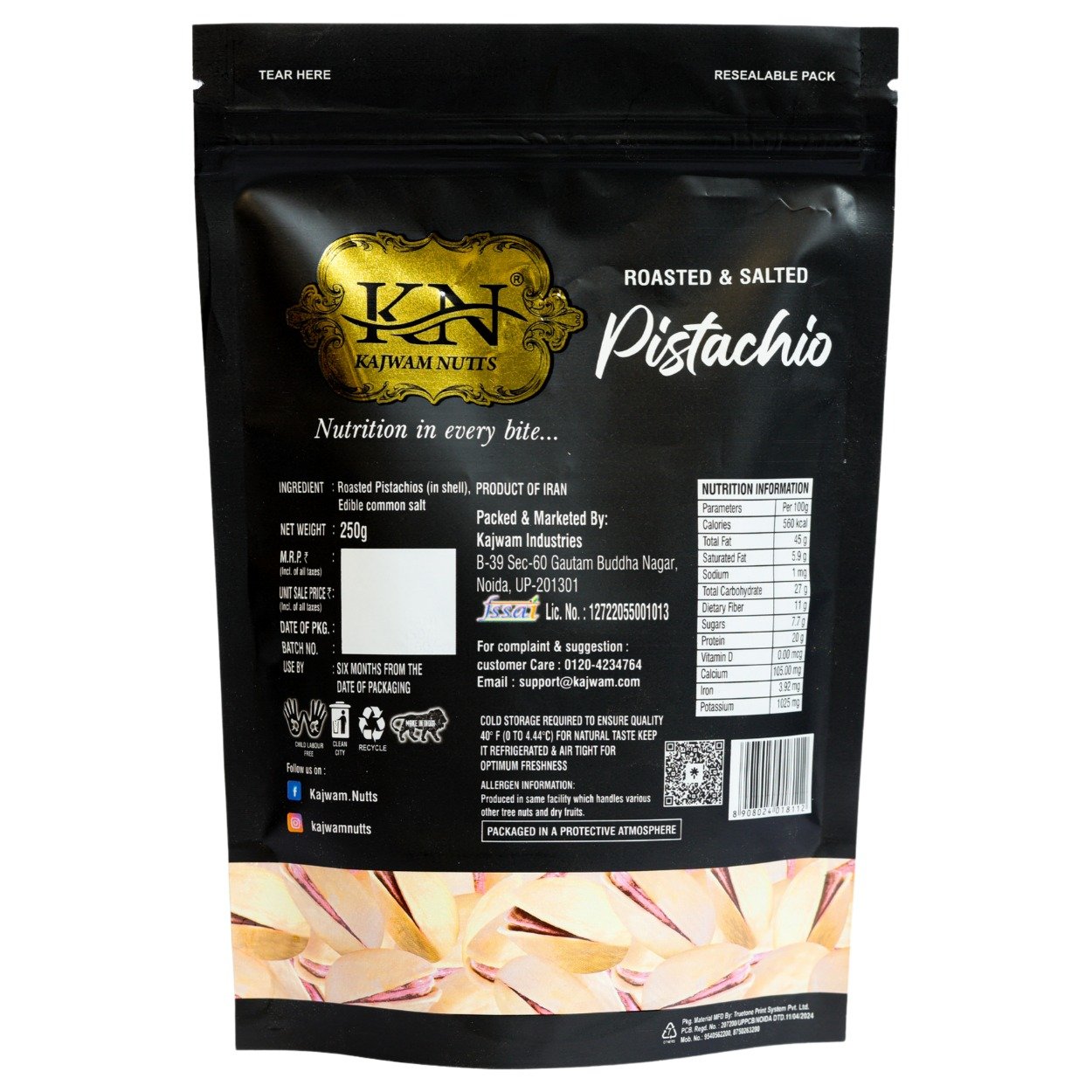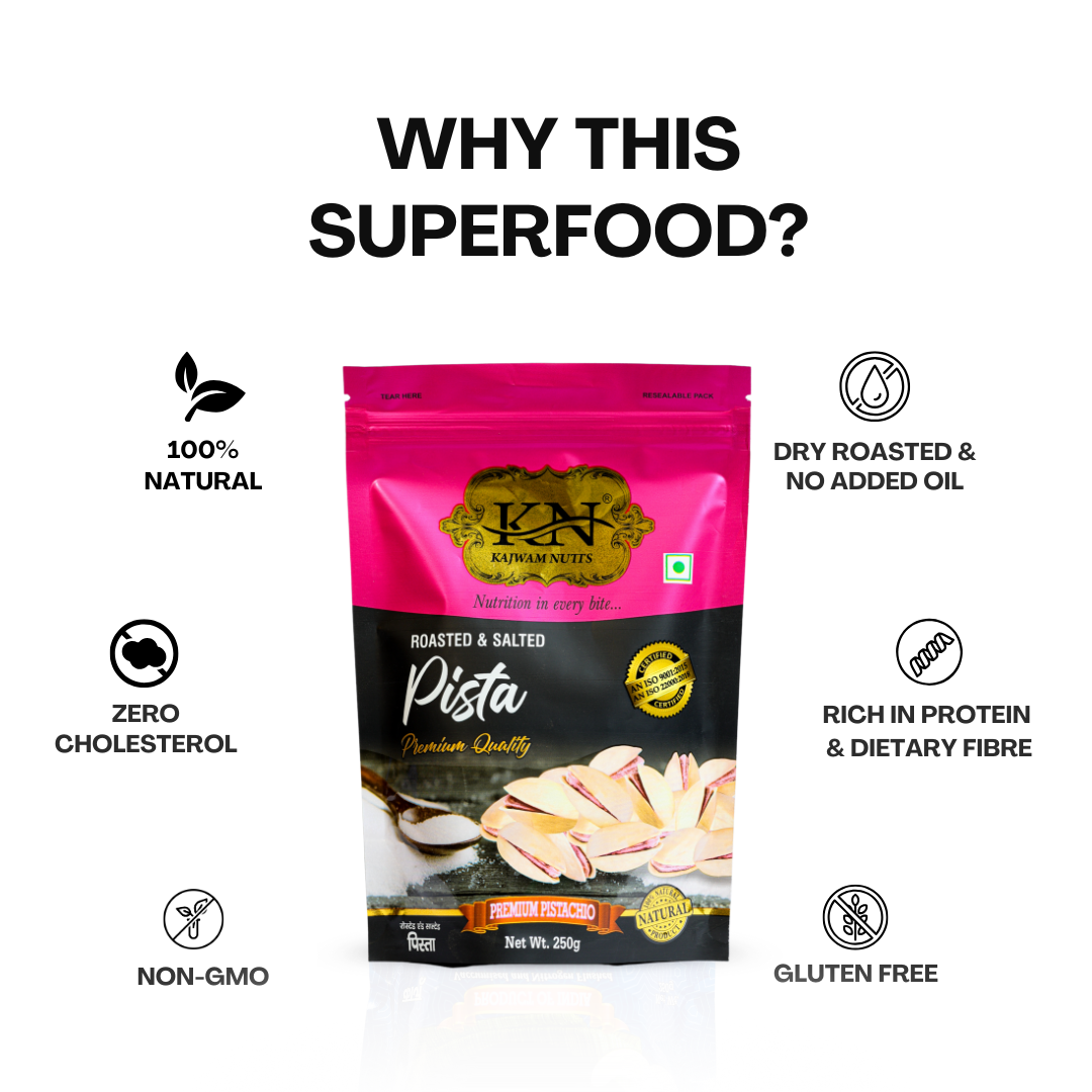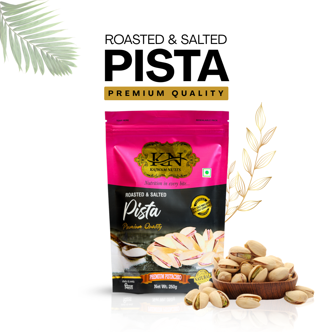 Kajwam Premium Irani Pista Roasted Salted Pistachios | 250 g | California Pista, Dry Fruits, Pistachios, Nutritious & Crunchir Pista Nuts, Tasty & Healthy Snacks (Pack of 1)